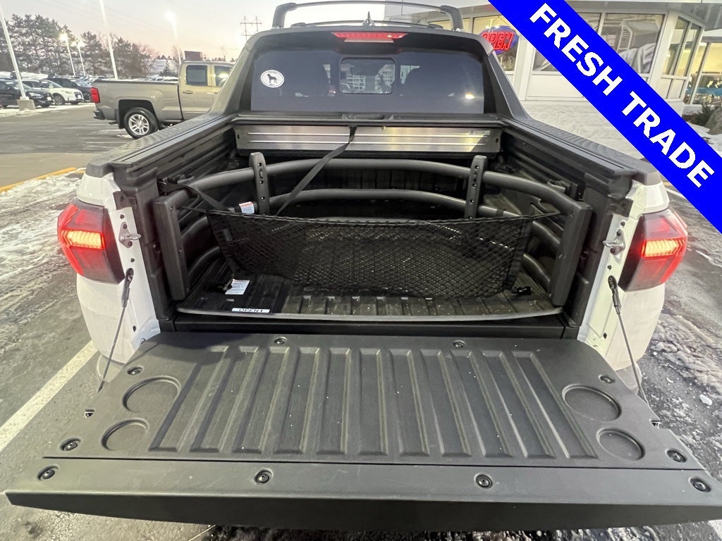 2025 Hyundai Santa Cruz Limited Atlas White LOCAL TRADE, HEATED LEATHER SEATS, KEYLESS ENTRY, REMOTE START, AWD / 4WD, Navigation System, Option Group 01, 3.316 Axle Ratio, 4-Wheel Disc Brakes, 8 Speakers, ABS brakes, Air Conditioning, Alloy wheels, AM/FM radio: SiriusXM, Apple CarPlay & Android Auto, Audio memory, Auto High-beam Headlights, Auto-dimming Rear-View mirror, Auto-leveling suspension, Automatic temperature control, Bed Fence, Brake assist, Bumpers: body-color, Carpeted Floor Mats, Compass, Cross Rails, Delay-off headlights, Driver door bin, Driver vanity mirror, Dual front impact airbags, Dual front side impact airbags, Electronic Stability Control, Emergency communication system: Bluelink+, Exterior Parking Camera Rear, Four wheel independent suspension, Front anti-roll bar, Front Bucket Seats, Front Center Armrest, Front dual zone A/C, Front reading lights, Fully automatic headlights, Garage door transmitter: HomeLink, Heated & Ventilated Front Bucket Seats, Heated door mirrors, Heated front seats, Heated steering wheel, Illuminated entry, Leather Shift Knob, Leather steering wheel, Leather-Trimmed Seat Trim, Low tire pressure warning, Memory seat, Occupant sensing airbag, Outside temperature display, Overhead airbag, Overhead console, Panic alarm, Passenger door bin, Passenger vanity mirror, Power door mirrors, Power driver seat, Power moonroof, Power passenger seat, Power steering, Power windows, Radio data system, Radio: AM/FM/HD w/Bose Premium Audio System, Rain sensing wipers, Rear anti-roll bar, Rear reading lights, Rear seat center armrest, Rear side impact airbag, Rear step bumper, Rear window defroster, Remote keyless entry, Roadside Assistance Kit, Security system, Speed control, Speed-sensing steering, Split folding rear seat, Spoiler, Steering wheel mounted audio controls, Tachometer, Telescoping steering wheel, Tilt steering wheel, Traction control, Trip computer, Turn signal indicator mirrors, Variably intermittent wipers, Ventilated front seats, Wheels: 20 x 7.5J Alloy, APPLE CARPLAY/ANDROID AUTO, ECFORD KEY POLICY. ALL USED VEHICLES COME WITH 1 KEY UNLESS TRADED IN WITH ADDITIONAL KEYS, Navigation System, Option Group 01. 19/27 City/Highway MPG